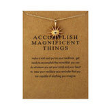 Accomplish Magnificent Things. Make a wish and put on your necklace. Get ready to accomplish the incredible! You can do whatever you set your mind to and your heart to. Wear your necklace as a reminder that you are capable of anything you imagine.